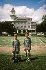 Boys in front of cottage