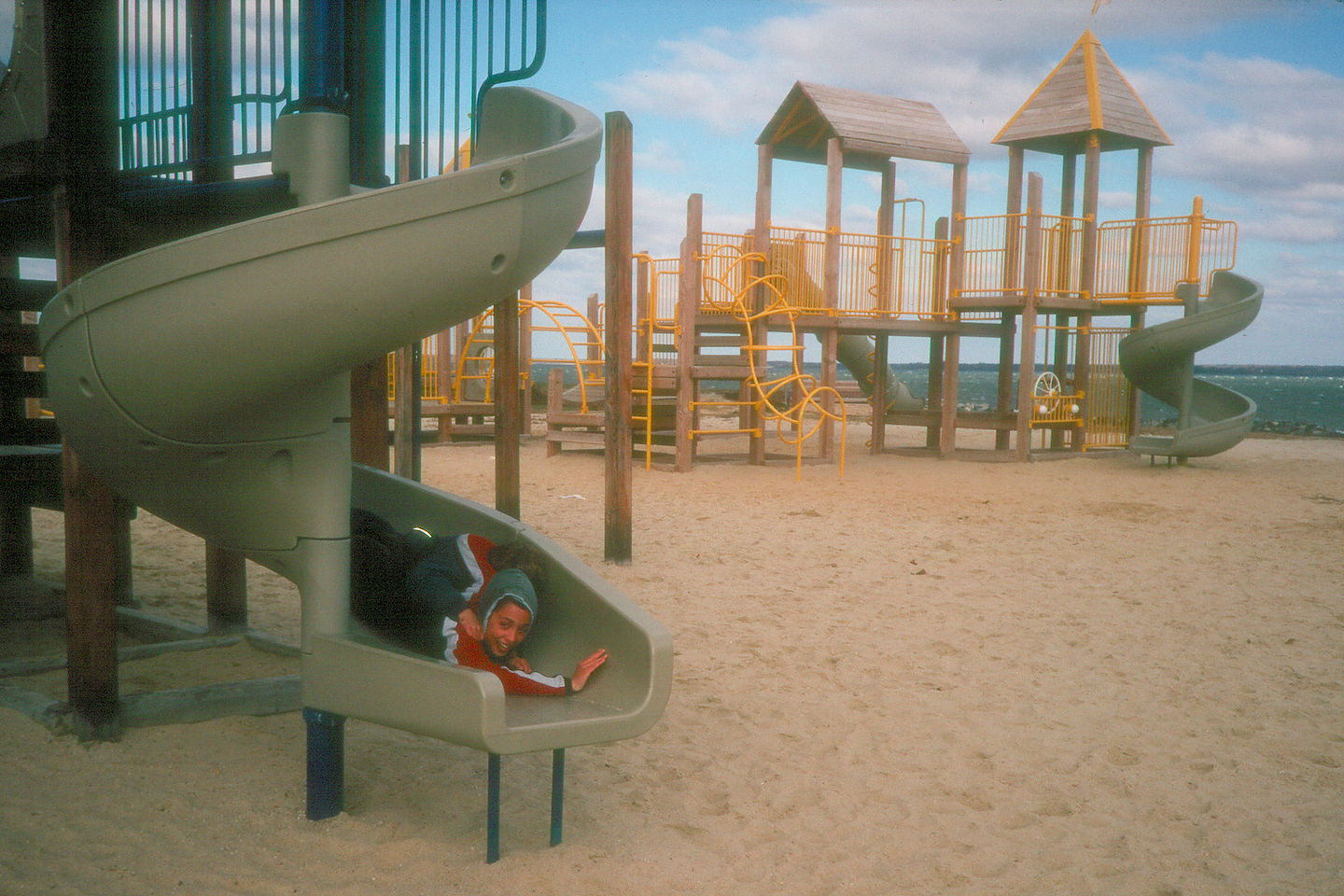 Boys on slide at rest stop