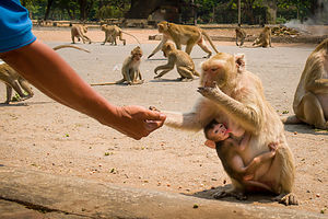 Feeding macaque monkeys