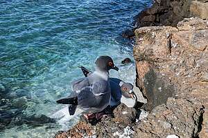 Lava gulls nesting on a cliff edge