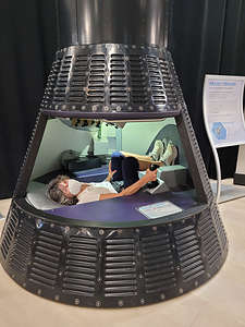 Lolo trying to sneak in a nap at the Air and Space Museum