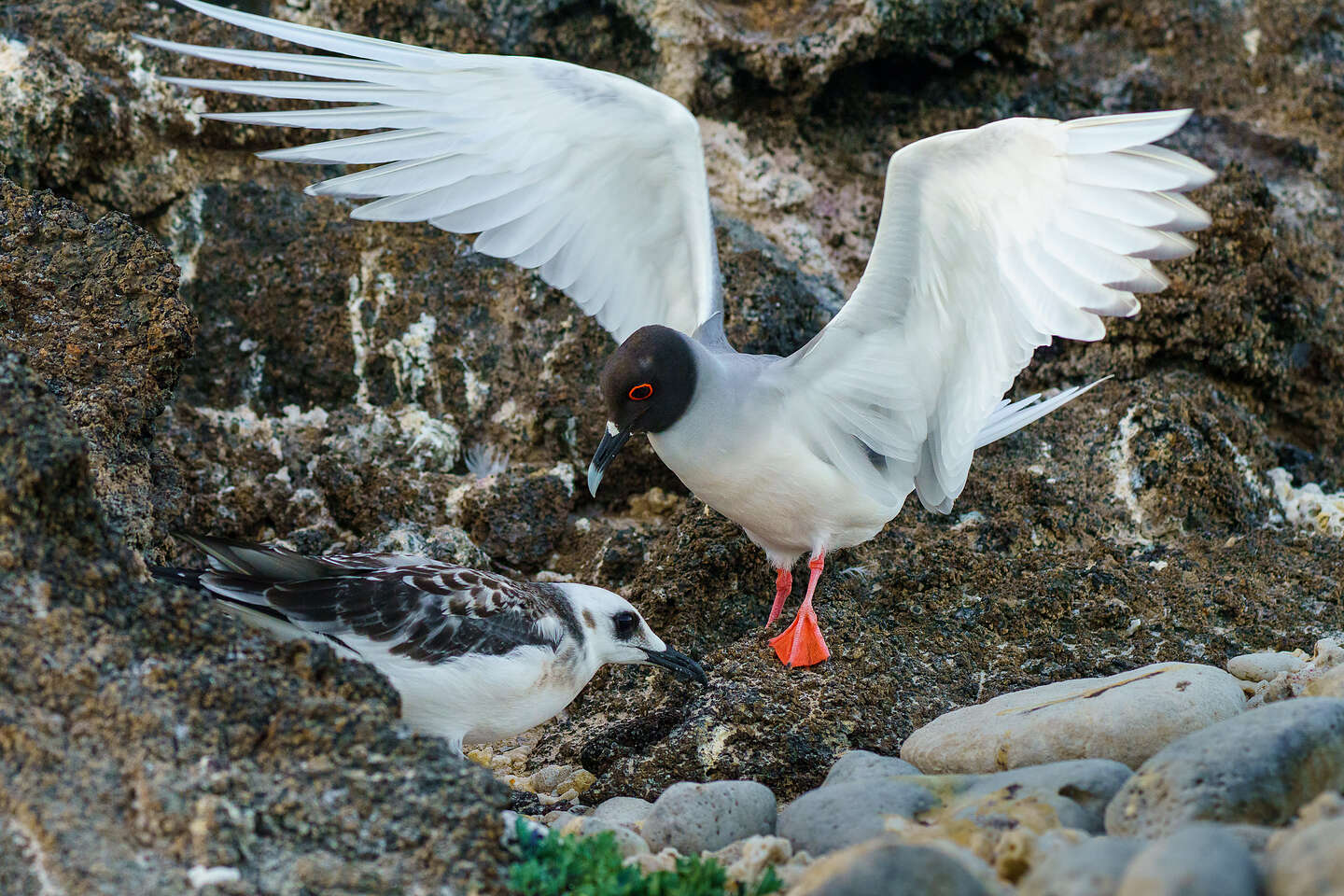 Swallow-tailed gull and her young